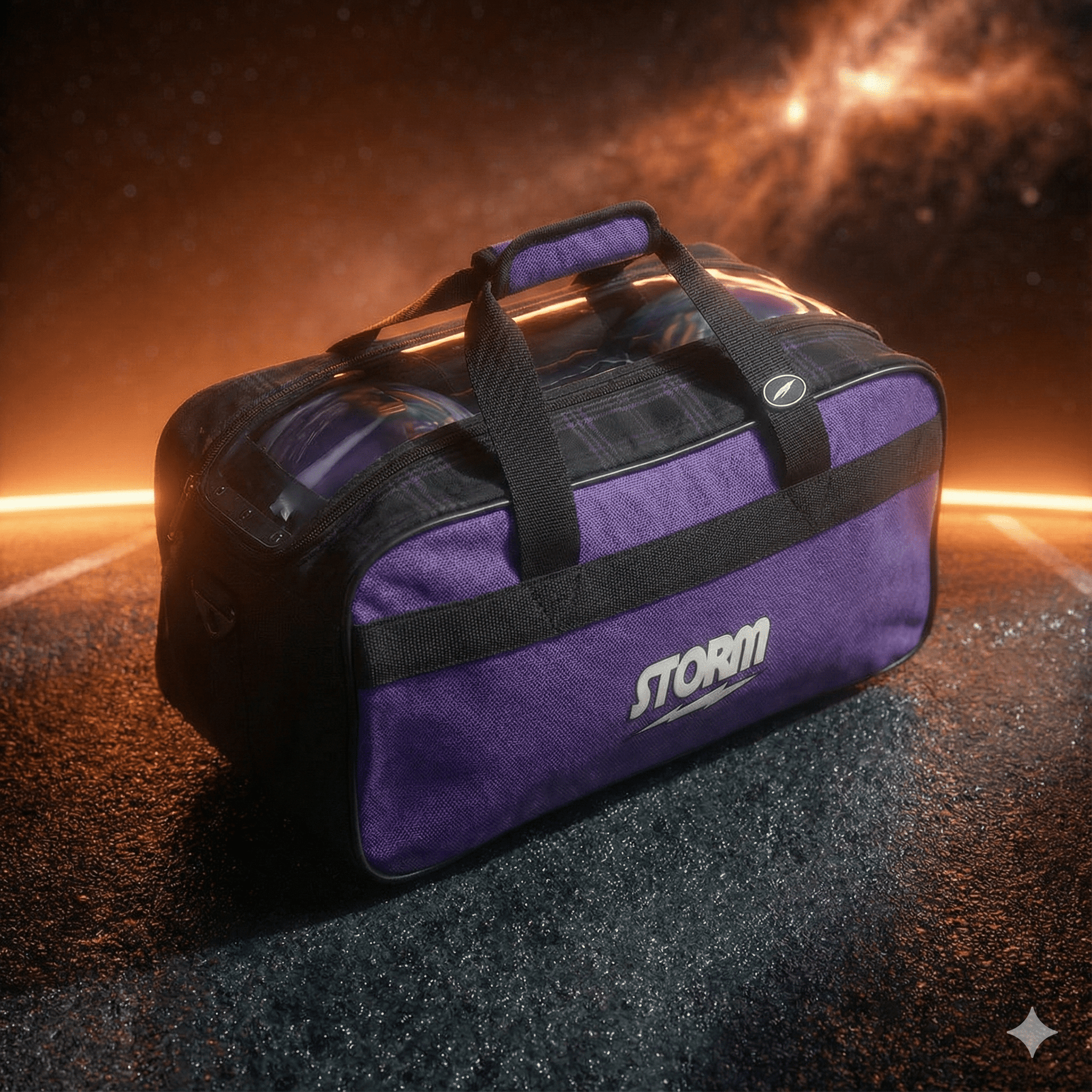 Le Storm 2 Ball Tote Abstract Purple Black est une solution simple, légère et efficace pour transporter l'essentiel. Son dessus transparent permet d'identifier rapidement vos boules, et ses poignées ainsi que sa sangle épaule rembourrée assurent un transport confortable.