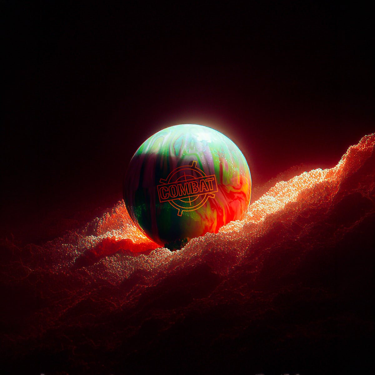 La Brunswick COMBAT HYBRID representa la cima de la gama Brunswick para las condiciones más exigentes. Su núcleo asimétrico Rampart, combinado con el coverstock híbrido HK22C Alpha Premier, ofrece una combinación única de lectura agresiva en el medio de la pista y explosividad en el backend.